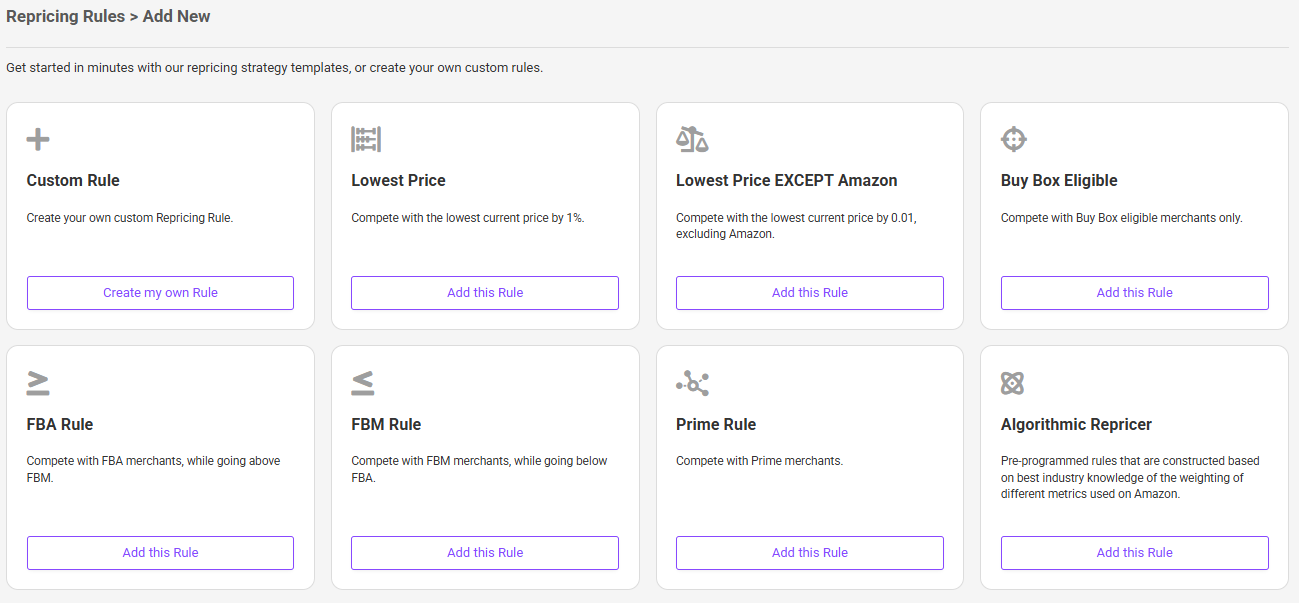 When creating an Amazon repricing rule you have an enormous amount of flexibility in options and controls available to you, so you can craft a strategy that suits your business and wins more Buy Boxes. In this article, we'll guide you through what's available and how to best use them.
